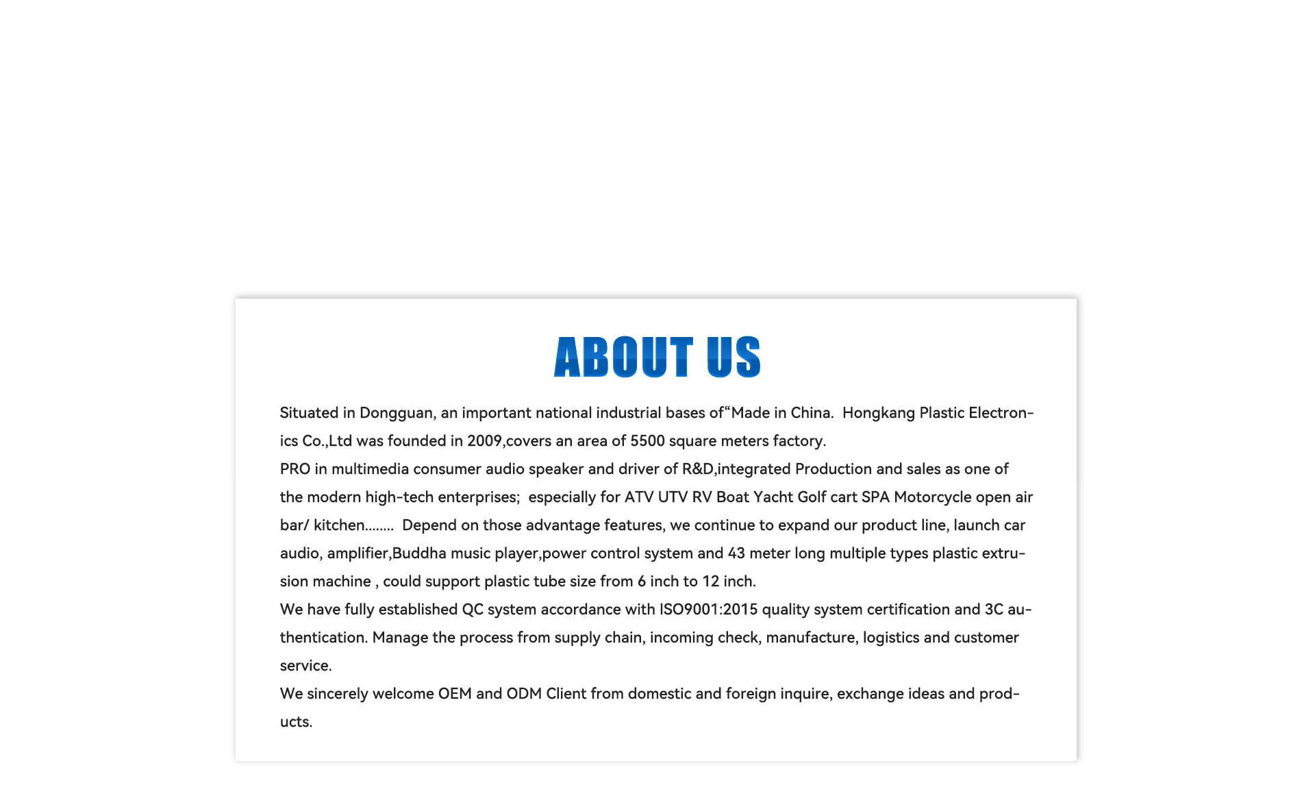Productos principales:Altavoz, amplificador, audio, extrusión de plástico, sistema de control de potencia